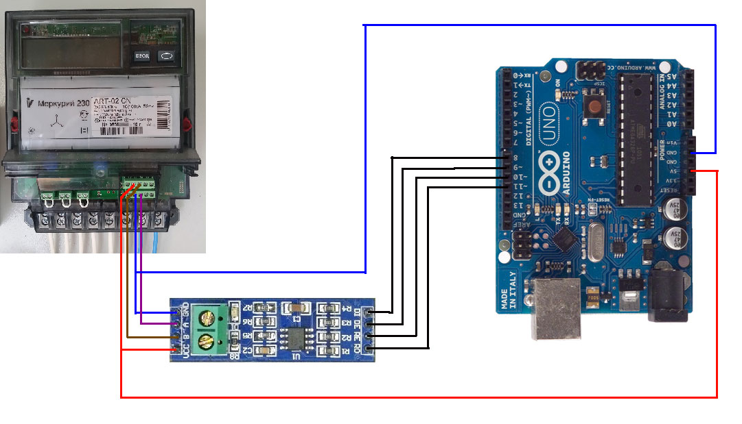 У трехфазного счетчика электричества Меркурий 230 ART есть шина CAN, с помощью которой можно подключить Arduino.